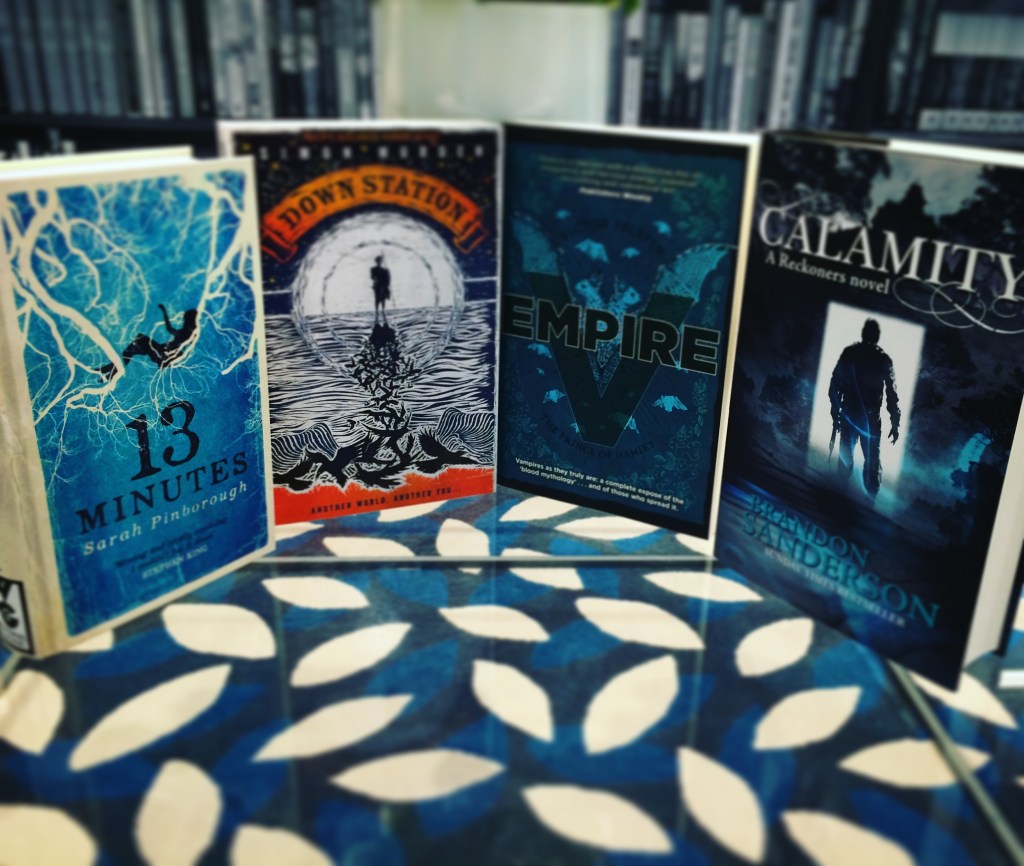 Readers rejoice! We have such a bumper crop of new releases for you! Escape to another London in Simon Morden’s Down Station, brace yourself for the EPIC finale of Brandon Sanderson’s The Reckoners series, uncover the chilling mystery at the heart of Sarah Pinborough’s 13 Minutes and join the revolution in Victor Pelevin’s Empire V. Wishlists at the ready, we have four stunning new worlds to dive into.