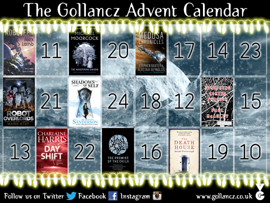 As part of Gollancz’s wonderful advent calendar giveaway for Christmas 2015, I am delighted to be able to offer a very special prize of a Robot Overlords quad poster signed by myself, director Jon Wright, and some of our lovely cast including Craig Garner (Mediator 452), James Tarpey (Nathan), Ella Hunt (Alex) and Gillian bleedin’ blinkin’ flippin’ Anderson!